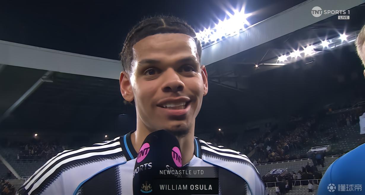 十人纽卡斯尔联在英超第29轮主场2-1击败了曼联。赛后,绝杀功臣奥苏拉接受了TNT体育的采访。你打进了一粒非凡的进球,感觉如何?“那是我前所未有最棒的感觉。我真的太开心了。上场的时候我就在祈祷自己能进球、能为球队带来一些改变。感谢上帝,这真的发生了。”“我昨天在训练中就一直在练这个动作——内切然后完成射门,所以努力终究得到了回报。”中场休息时教练给你的指示?“他告诉我要上场并给比赛带来影响。荣耀归